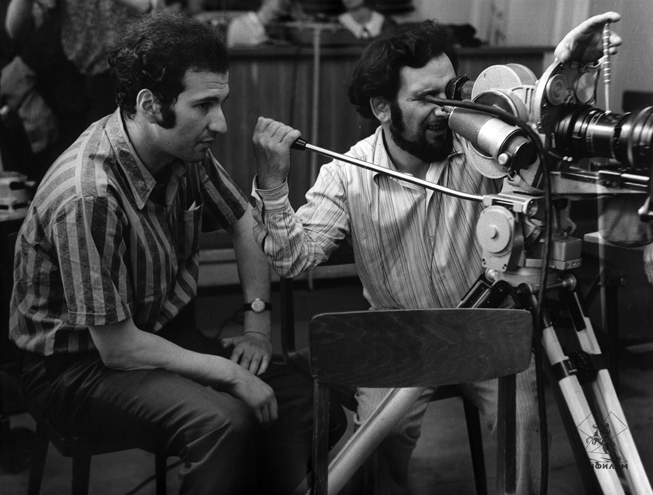 Режиссер Борис Фрумин и оператор Алексей Гамбарян на съемках фильма «Дневник директора школы». Реж. Борис Фрумин. 1975 © Киностудия «Ленфильм»