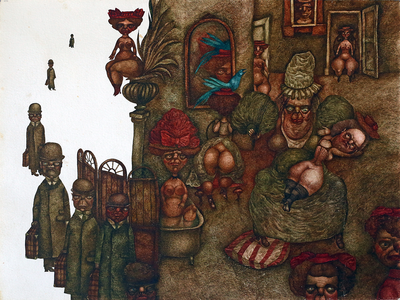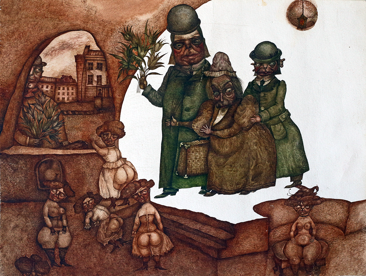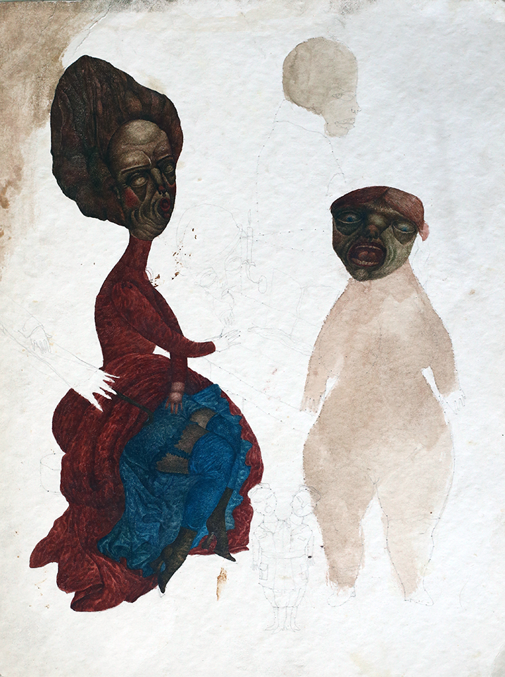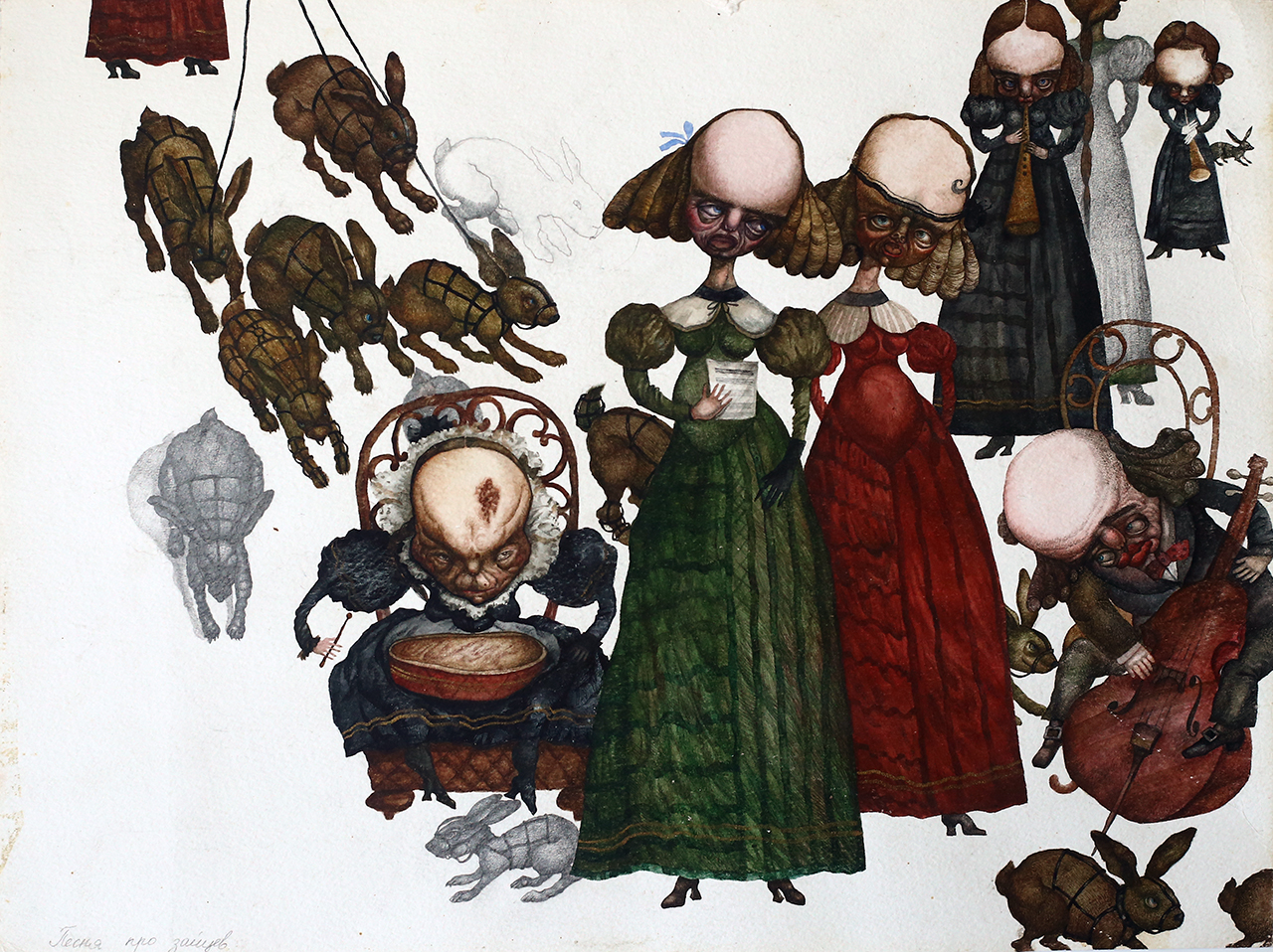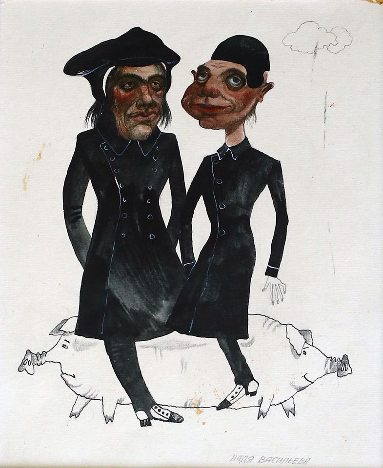 В 1999 г. первая персональная выставка Васильевой проходит в петербургском Арт-кафе «Идиот». Основную часть экспозиции составляют эскизы к фильму Алексея Балабанова «Про уродов и людей». «Экспозиция состояла из авторских акварелей, сделанных не для фильма, а по поводу фильма. С точки зрения кинопроизводства — бессмысленно и бескорыстно, как и делается искусство. Получился параллельный сюжет. ‹…› Ожившие картинки немого кино, эротической фотографии начала века, Надя согнала обратно в зазеркалье, перепоместила — на полочку, в рамочку, в шкатулку, в ларец. В кукольный мир, где и куклы и вещи знают свое место».