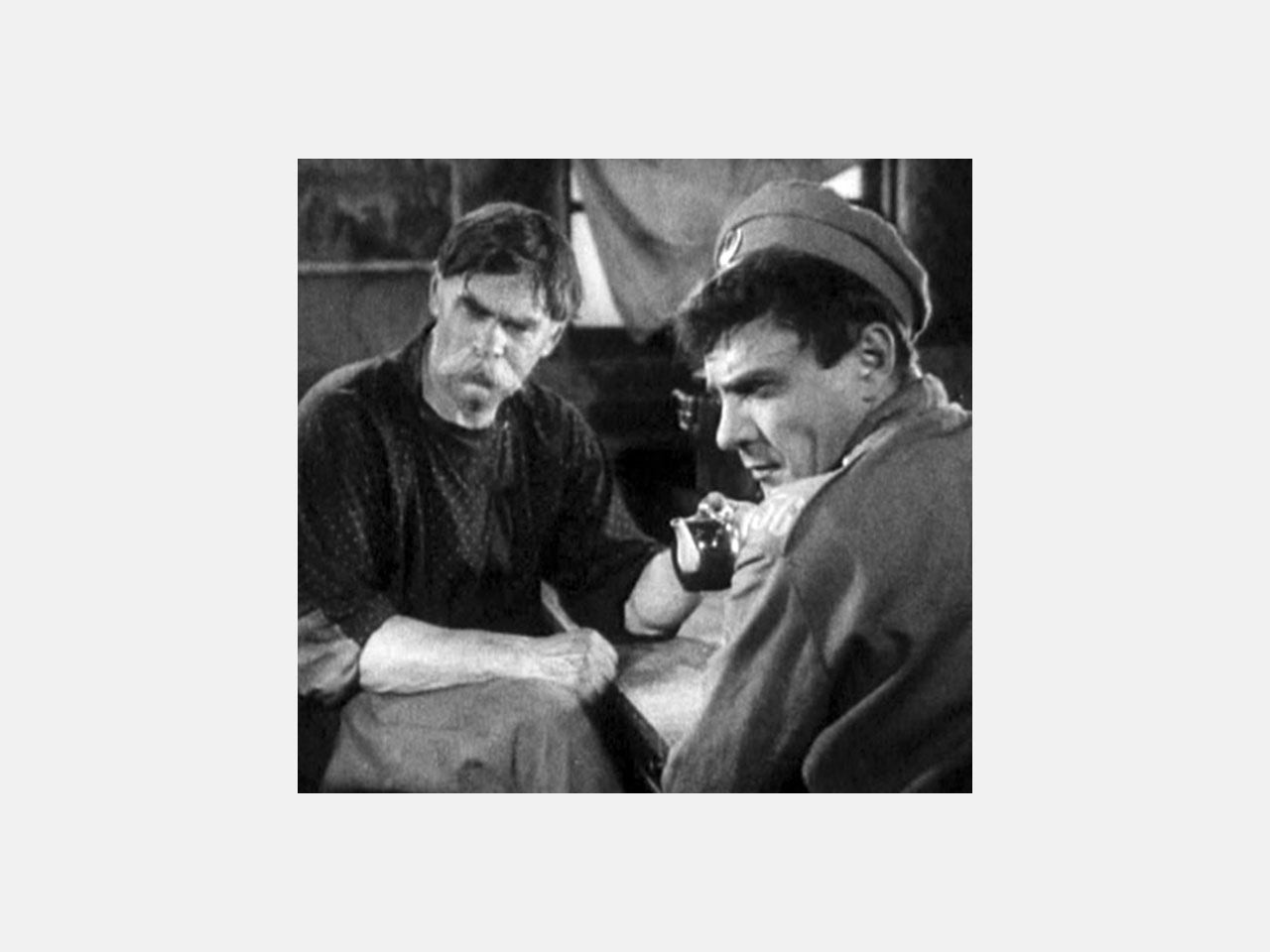 Николай Боголюбов в роли Николая Кадкина, Николай Чистяков в роли Петра Кадкина. Фильм «Окраина». Реж. Борис Барнет.1933