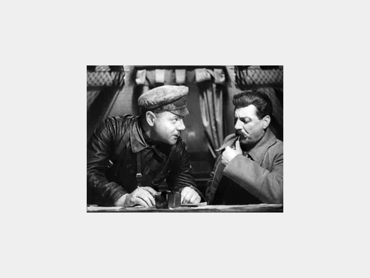 Николай Боголюбов в роли Ворошилова, Михаил Геловани в роли Сталина. Фильм «Ленин в 1918 году». Реж. Михаил Ромм. 1939