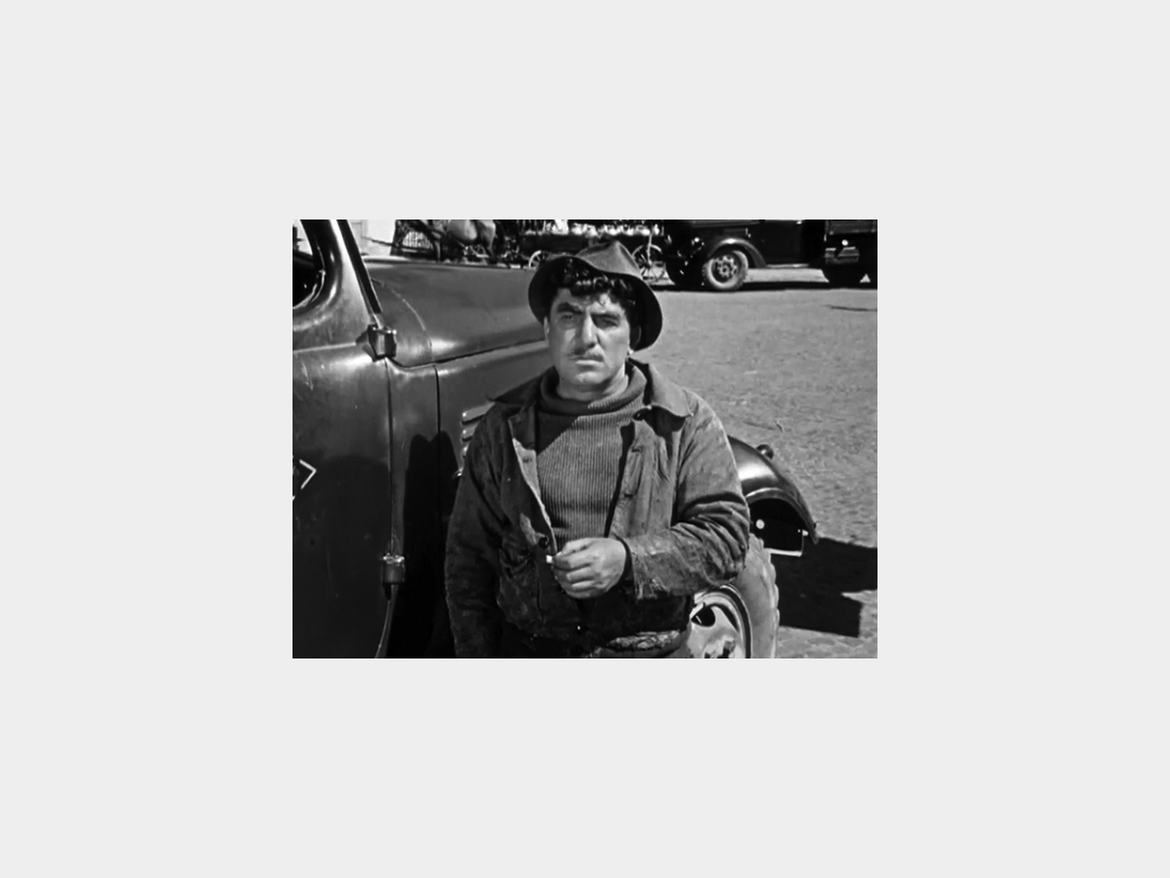 Николай Крючков в роли шофера в фильме «Об этом забывать нельзя». Реж. Леонид Луков. 1954