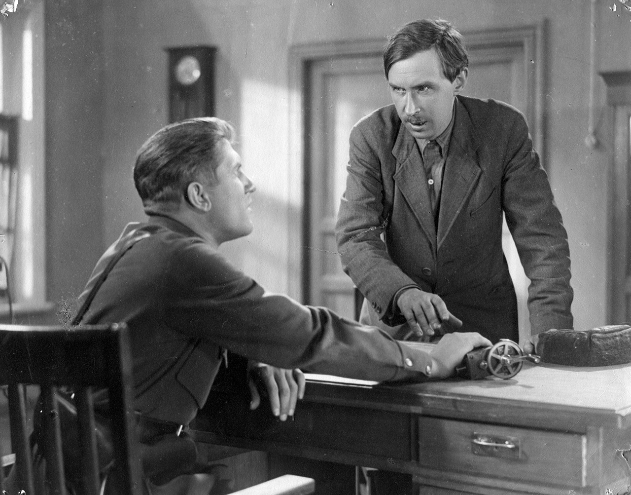 Николай Крючков в роли коменданта Тарасова и Эраст Гарин в роли диверсанта Волкова в фильме «На границе». Реж. Александр Иванов. 1938