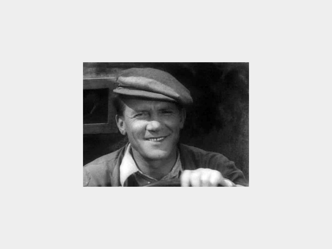 Николай Крючков в роли шофера Пети Синичкина в фильме «Счастливый рейс». Реж. Владимир Немоляев. 1949