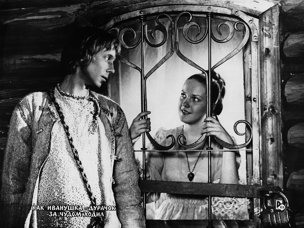 Олег Даль в роли Иванушки-дурачка и Елена Проклова в роли Анастасии Марковны в фильме «Как Иванушка-дурачок за чудом ходил». Реж. Надежда Кошеверова. 1977