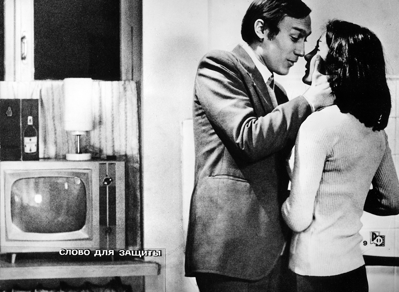 Олег Янковский в роли Руслана Шевернева и Галина Яцкина в роли Ирины Межниковой в фильме «Слово для защиты». Реж. Вадим Абдрашитов. 1976