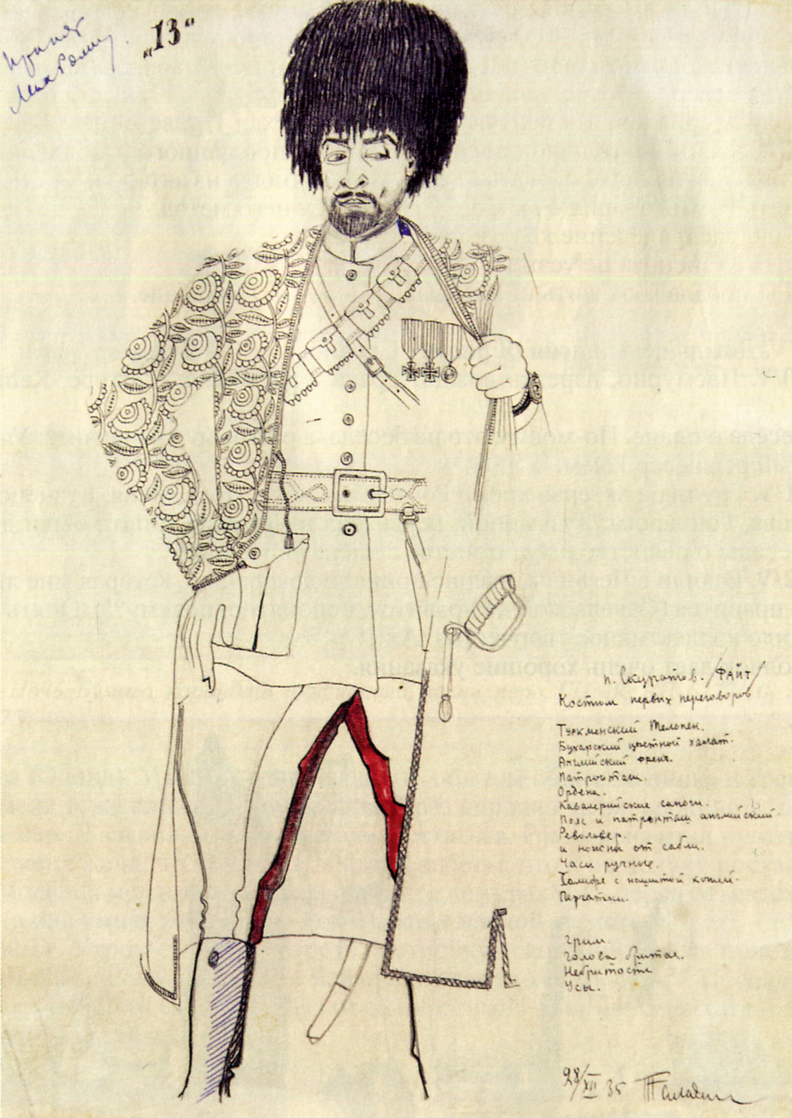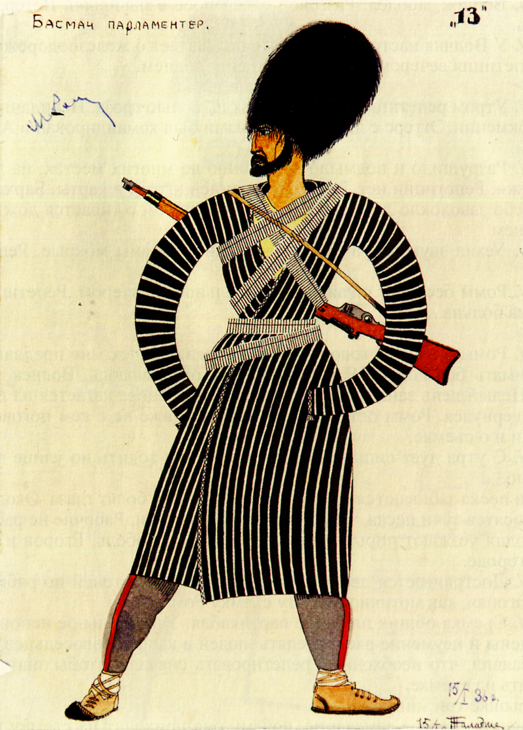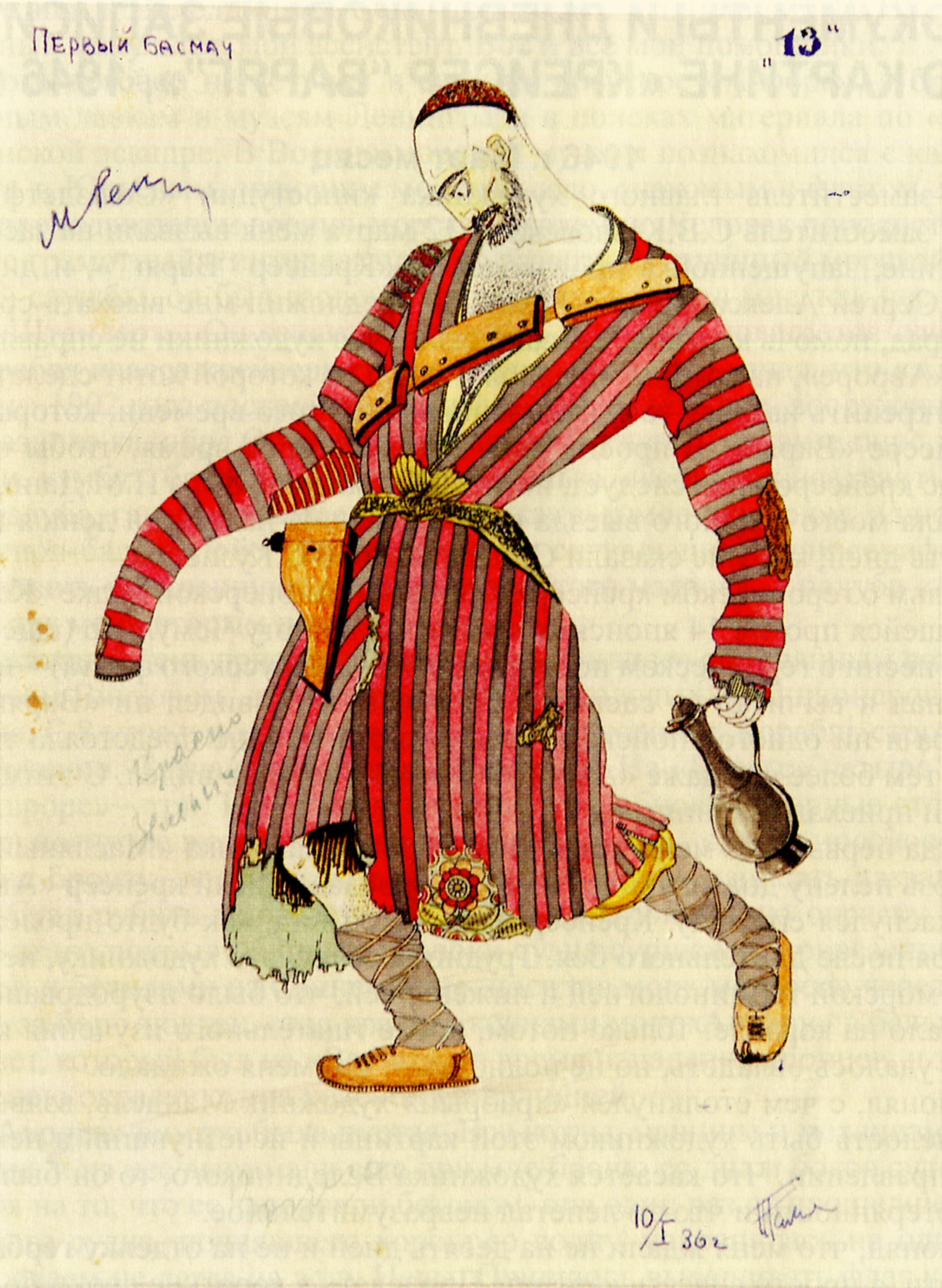 Эскиз костюма басмача-парламентера. Бумага, карандаш графитный, тушь, перо, гуашь. Киноведческие записки. 2011/2012. № 99.