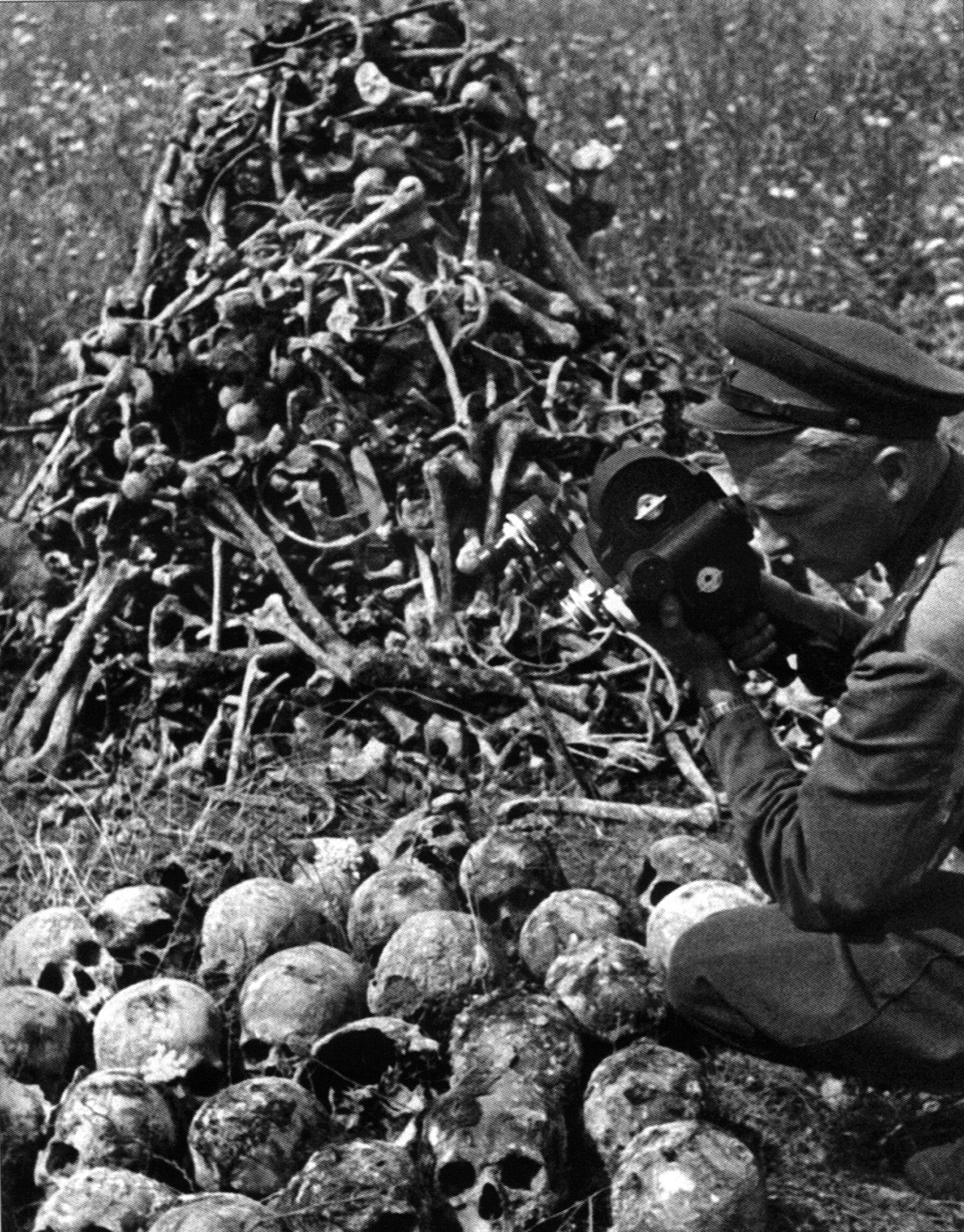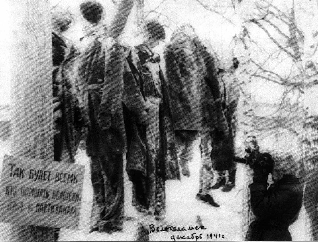 Освобожден Волоколамск. Роман Кармен снимает повешенных партизан