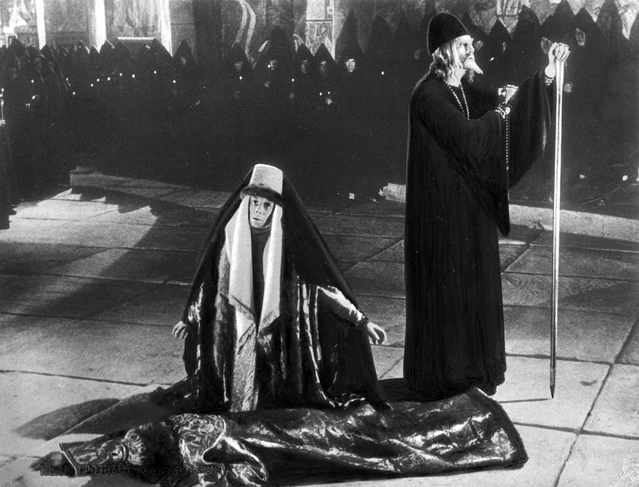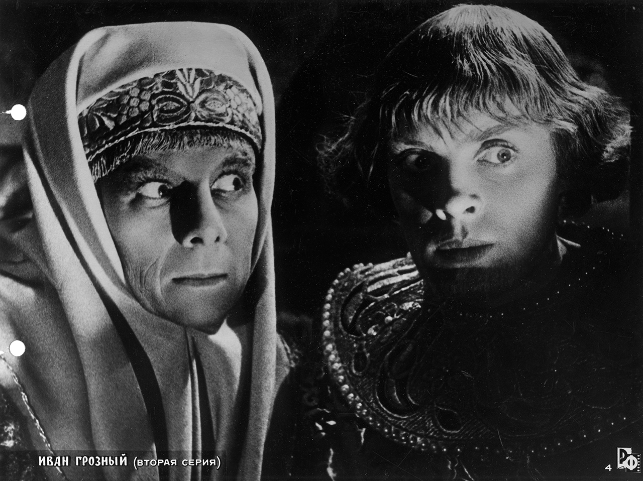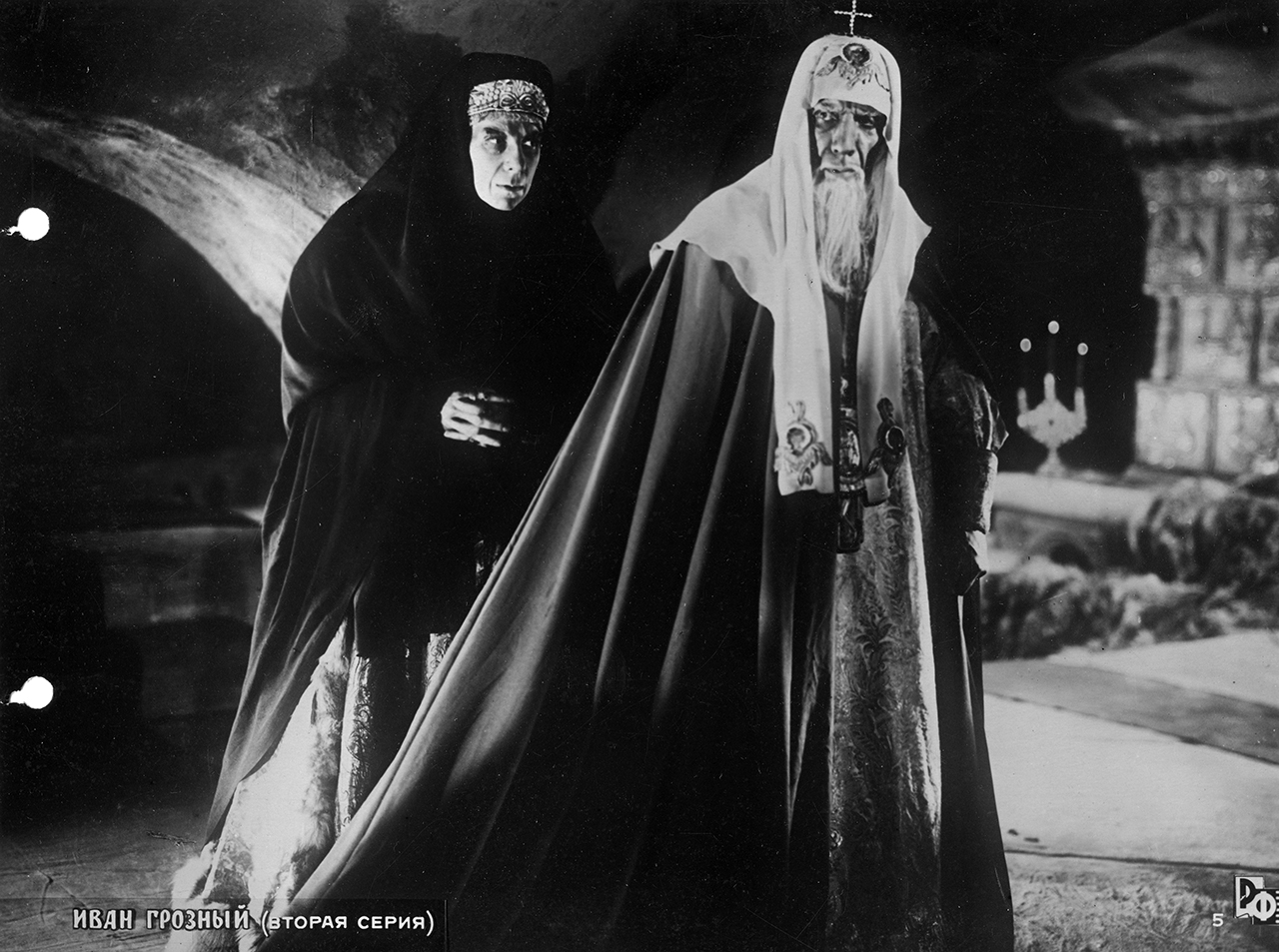 Серафима Бирман в роли Ефросиньи Старицкой и Александр Мгебров в роли архиепископа Пимена в фильме «Иван Грозный» (вторая серия). Реж. Сергей Эйзенштейн. 1945