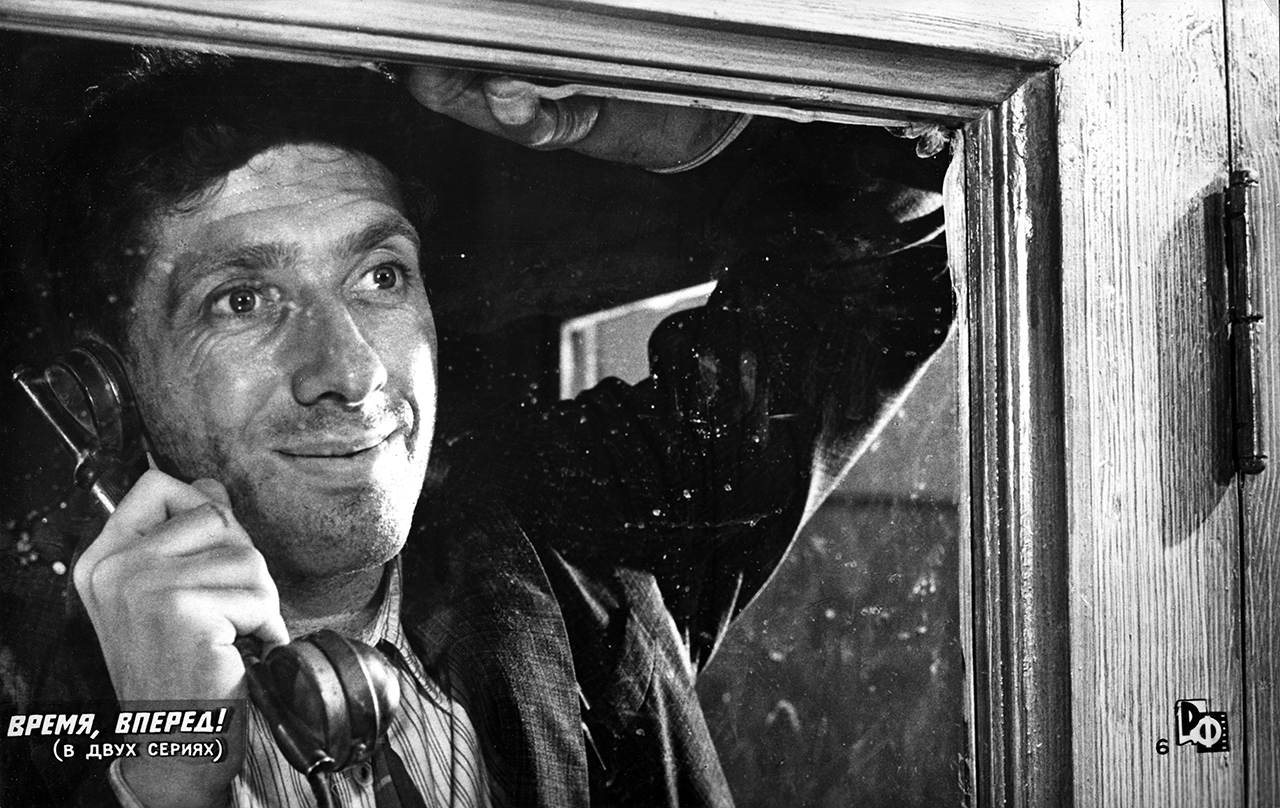 Сергей Юрский в роли начальника участка Давида Маргулиеса . Кадр из фильма «Время, вперед!». Реж. София Милькина и Михаил Швейцер. 1965