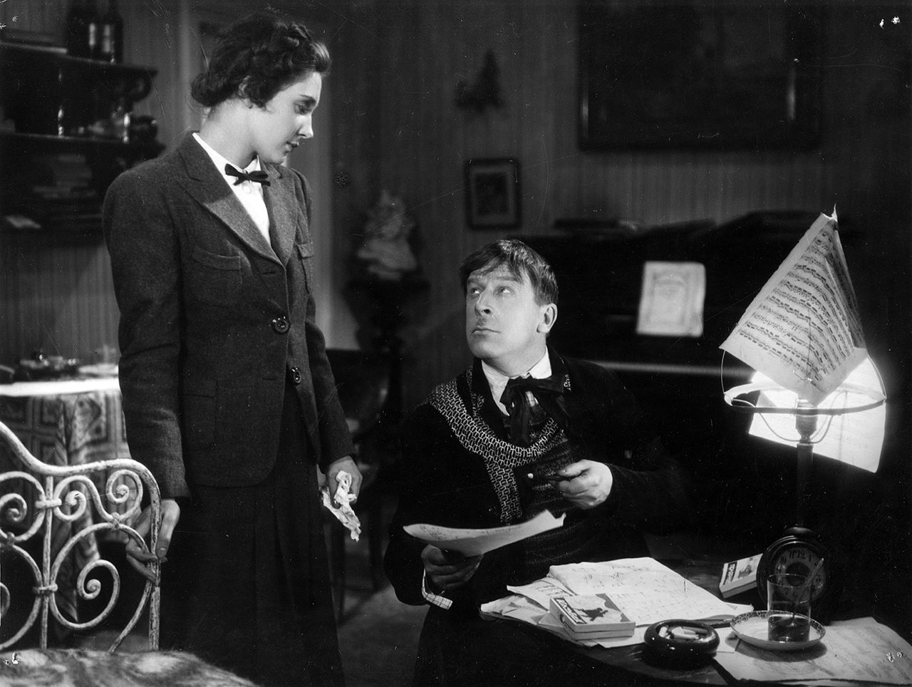 Татьяна Кондракова в роли Дины Вороновой и Сергей Мартинсон в роли Керосинова в фильме «Антон Иванович сердится». Реж. Александр Ивановский. 1941