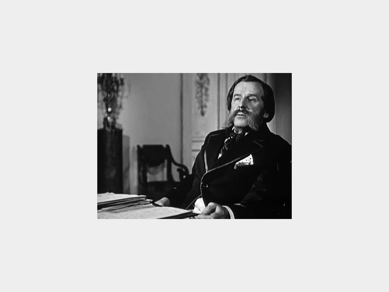 Сергей Мартинсон в роли казначея Географического общества Андрея Шатило в фильме «Пржевальский». Реж. Сергей Юткевич. 1951