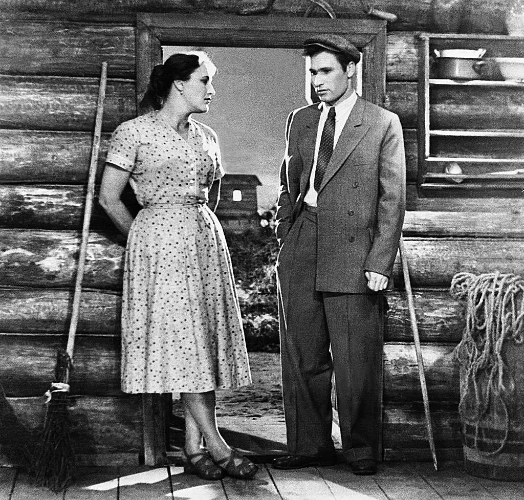 Василий Шукшин в роли Ваньки Лыкова и Нонна Мордюкова в роли Саши Потаповой. Кадр из фильма «Простая история». Реж. Юрий Егоров. 1960