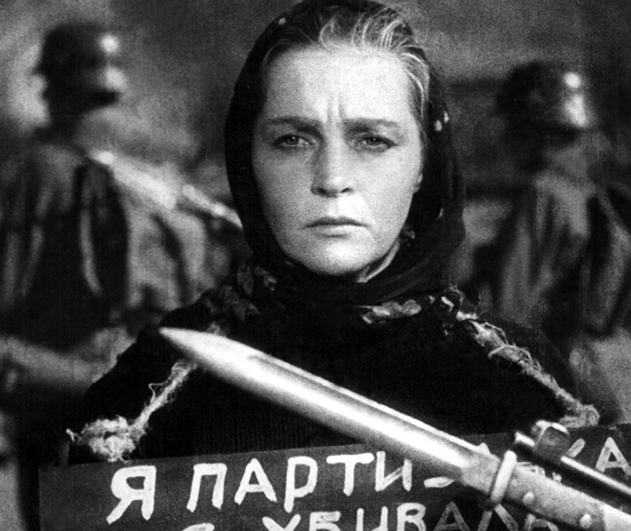 Вера Марецкая в роли Прасковьи Лукьяновой («Товарища П»). Кадр из фильма «Она защищает Родину» Реж. Фридрих Эрмлер. 1943