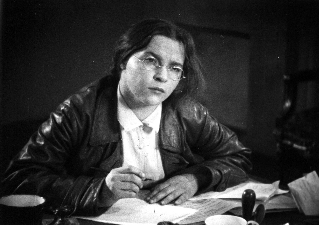 Вера Марецкая в роли секретаря ревкома. Кадр из фильма «Два бульди два». Реж. Нина Агаджанова-Шутко и Лев Кулешов. 1929