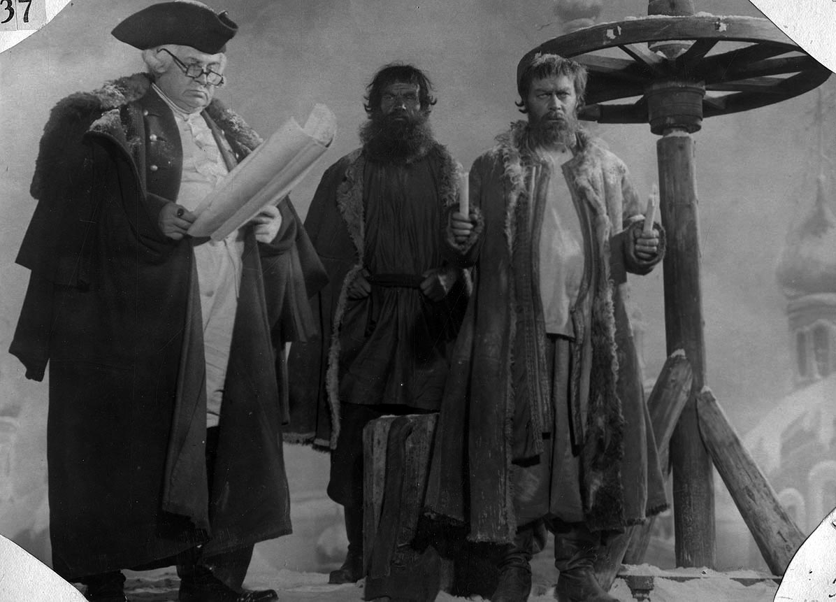 Владимир Гардин в роли графа Петра Толстого и Ирина Зарубина в роли Ефросиньи в фильме «Петр Первый». Реж. Владимир Петров. 1937 @ РНБ. Ф. 173. Оп. 2. Д. 33. Л. 190