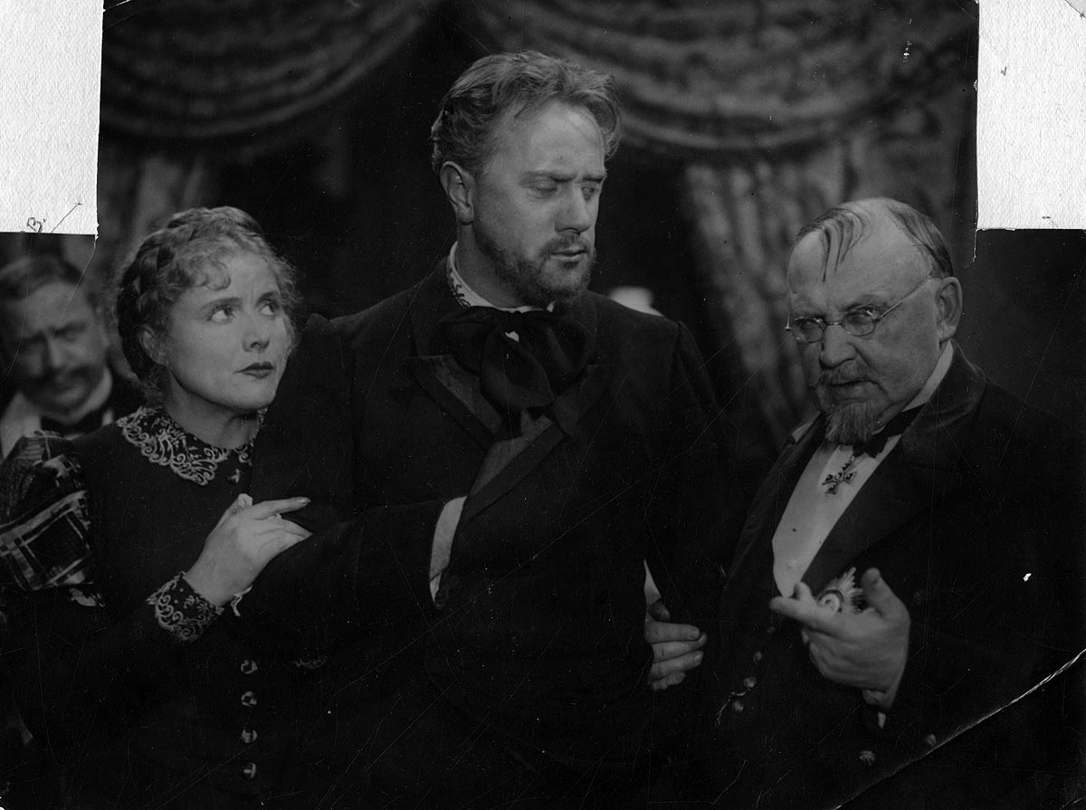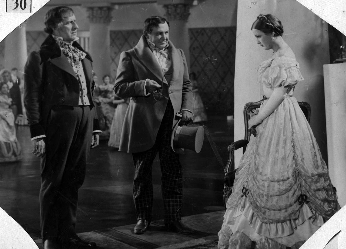 Николай Монахов в роли Троекурова, Владимир Гардин в роли князя Верейского и Галина Григорьева в роли Марьи Троекуровой в фильме «Дубровский». Реж. Александр Ивановский. 1936 @ РНБ. Ф. 173. Оп. 2. Д. 33. Л. 170