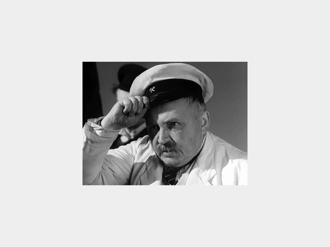 Владимир Гардин в роли соседа Маркиных в фильме «Морской батальон». Реж. Александр Файнциммер и Адольф Минкин. 1944