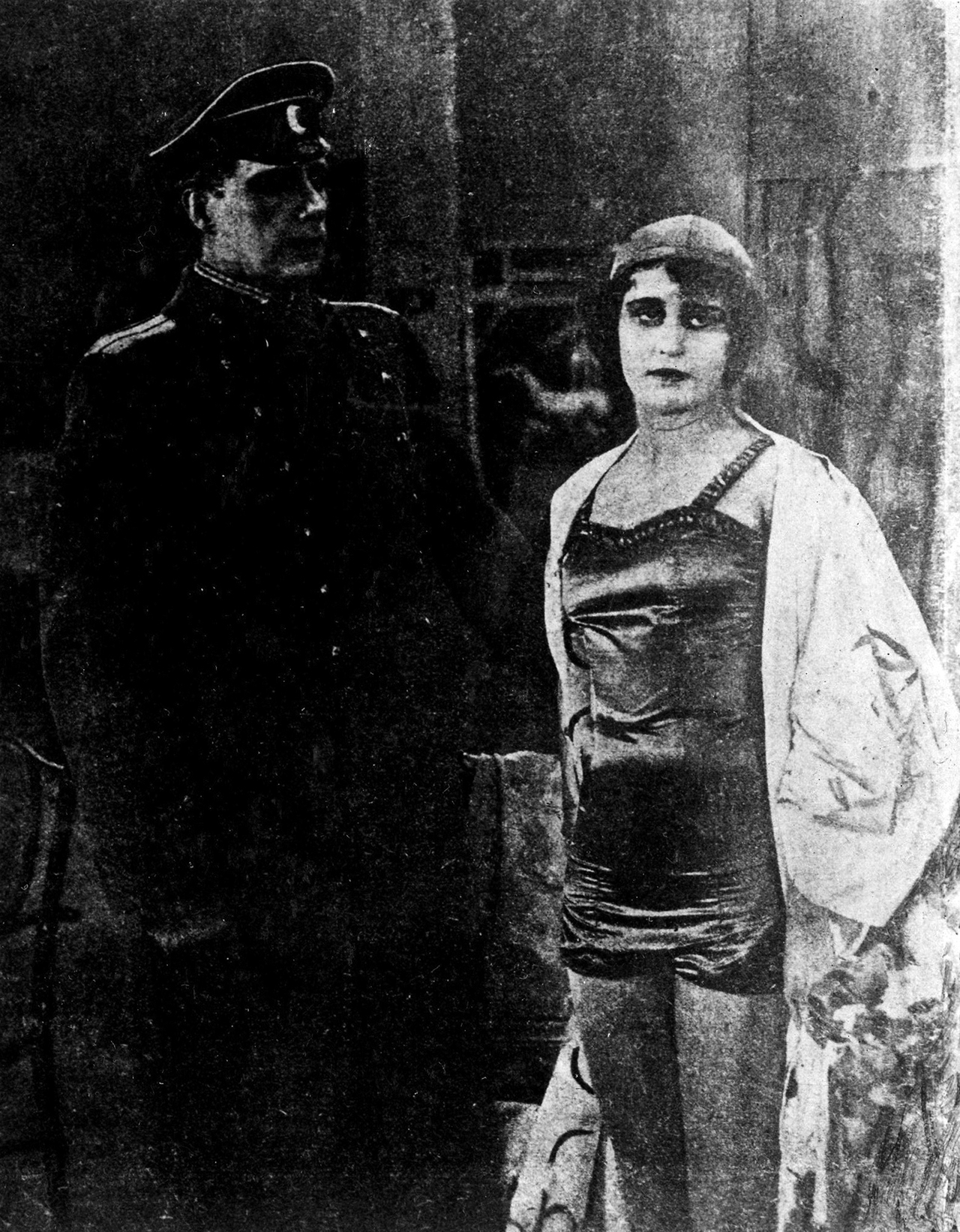 Вера Холодная в роли цирковой артистки Мары Зет и Владимир Максимов в роли Юрия Мещерского в фильме «Позабудь про камин, в нем погасли огни». Реж. Петр Чардынин. 1917