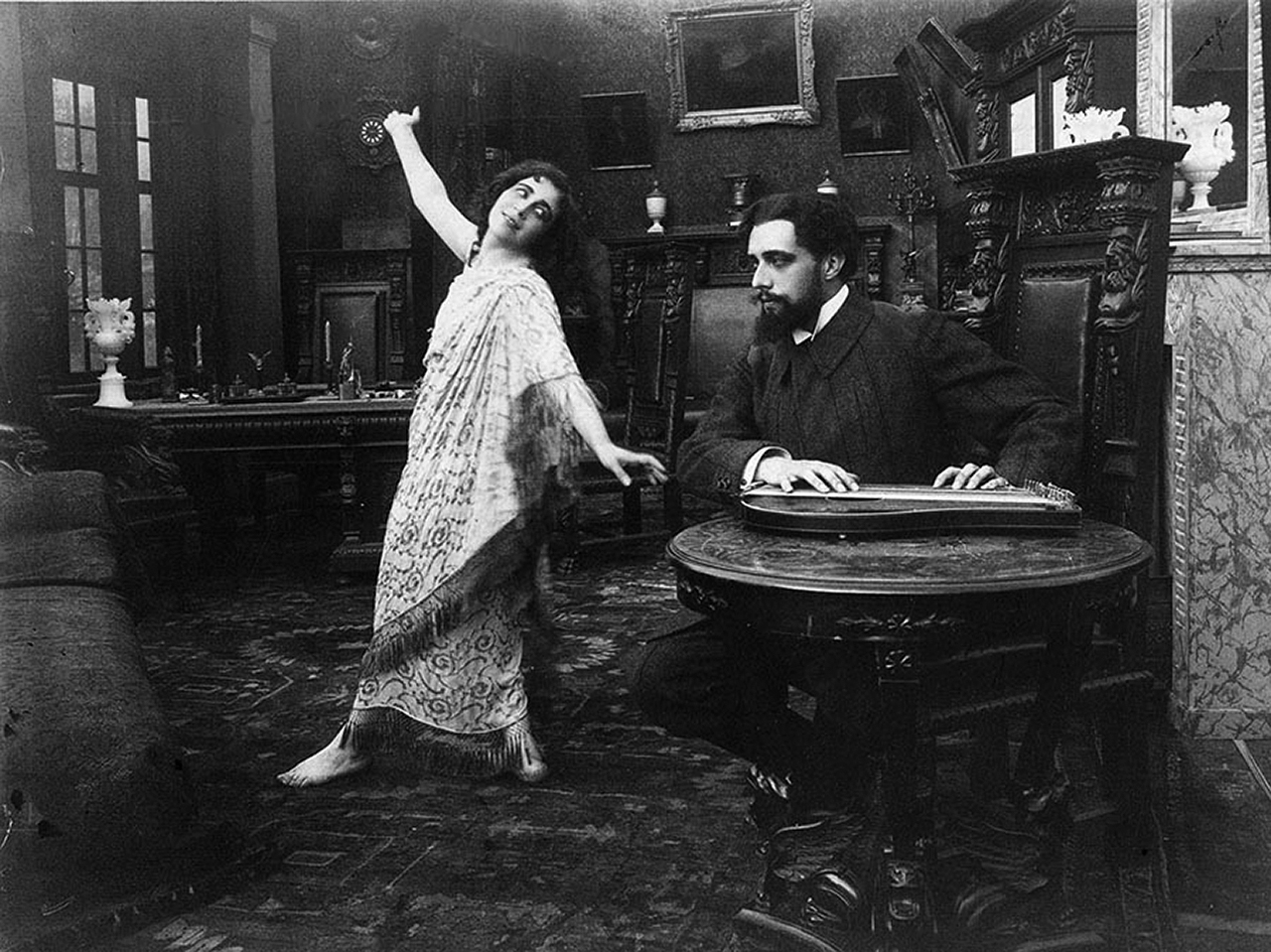 Вера Холодная в роли цыганки Маши и Владимир Максимов в роли Федора Протасова в фильме «Живой труп». Реж. Чеслав Сабинский. 1918