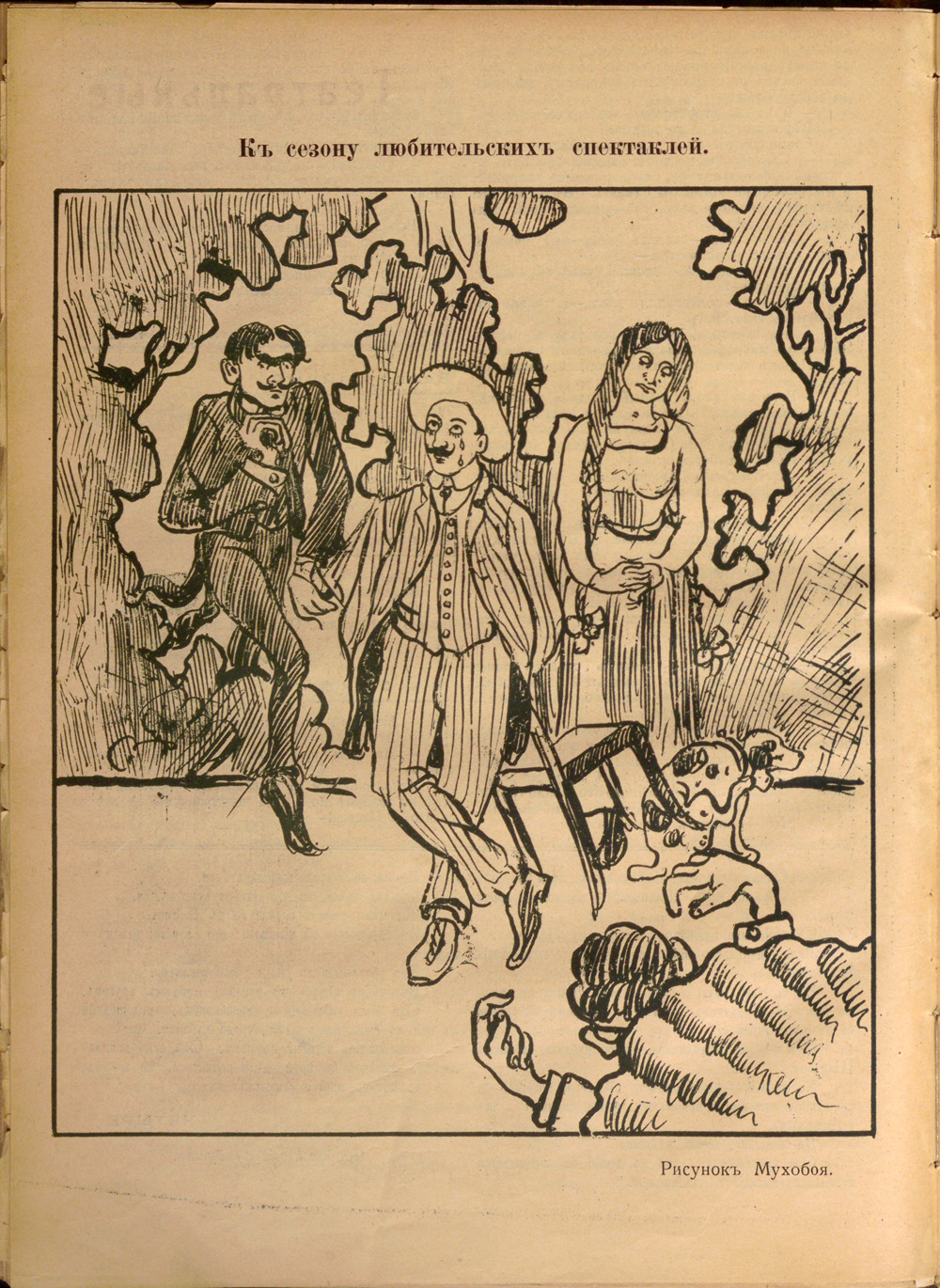 «К сезону любительских спектаклей». Иллюстрация В.Старевича из журнала «Ковенское зеркало».