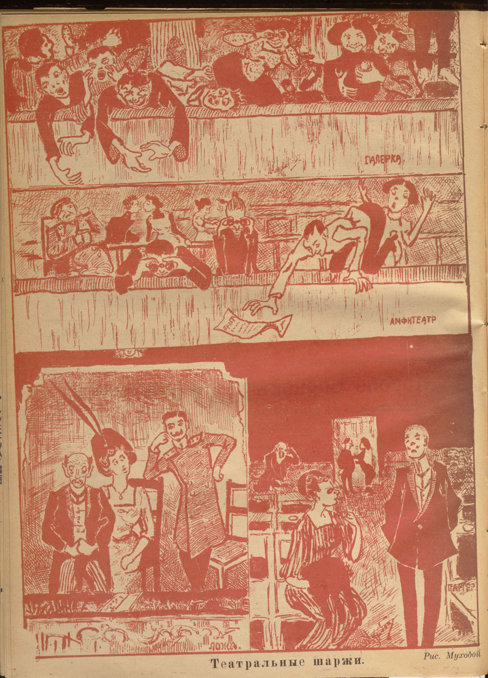«Театральные шаржи». Иллюстрация В.Старевича из журнала «Ковенское зеркало».