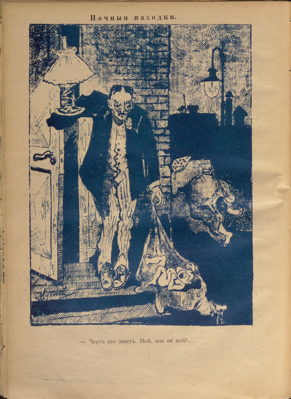 «Ночные находки. – Черт его знает. Мой, или не мой?..». Иллюстрация В.Старевича из журнала «Ковенское зеркало».
