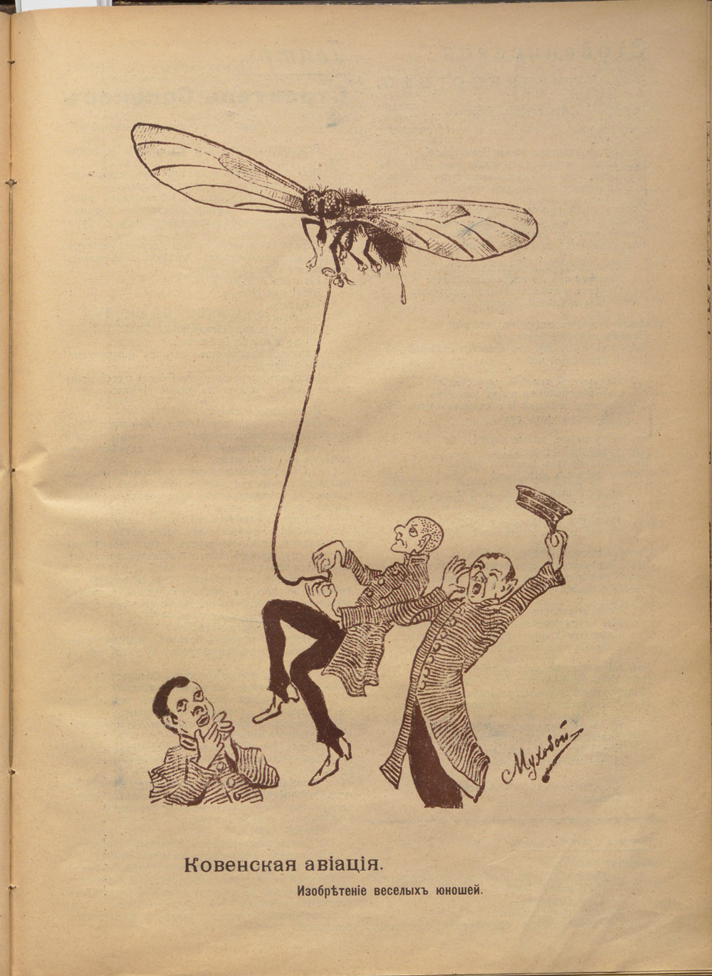 «Ковенская авиация. Изобретение веселых юношей». Иллюстрация В.Старевича из журнала «Ковенское зеркало».