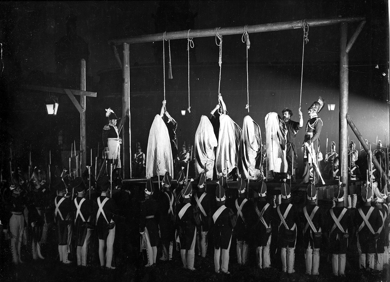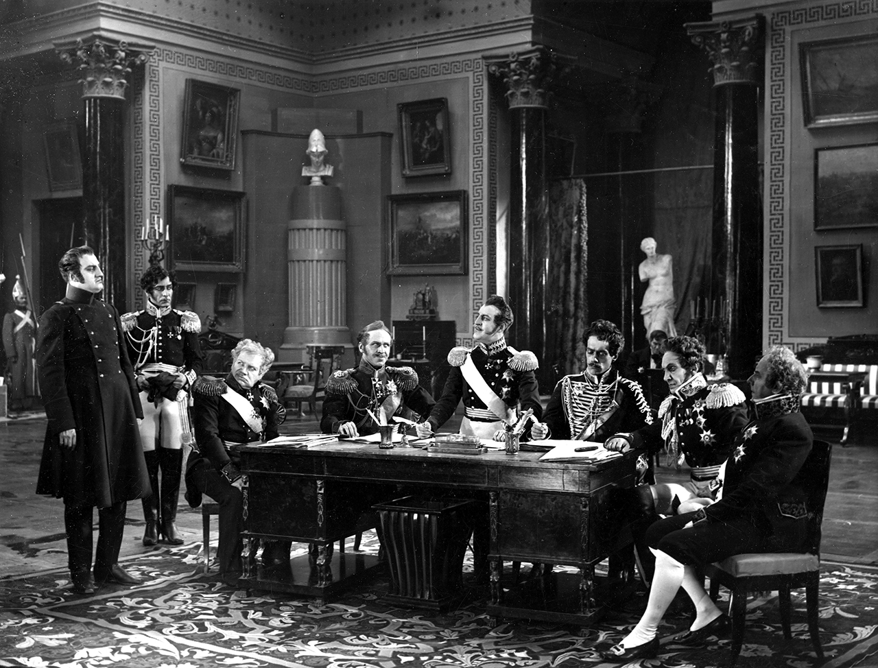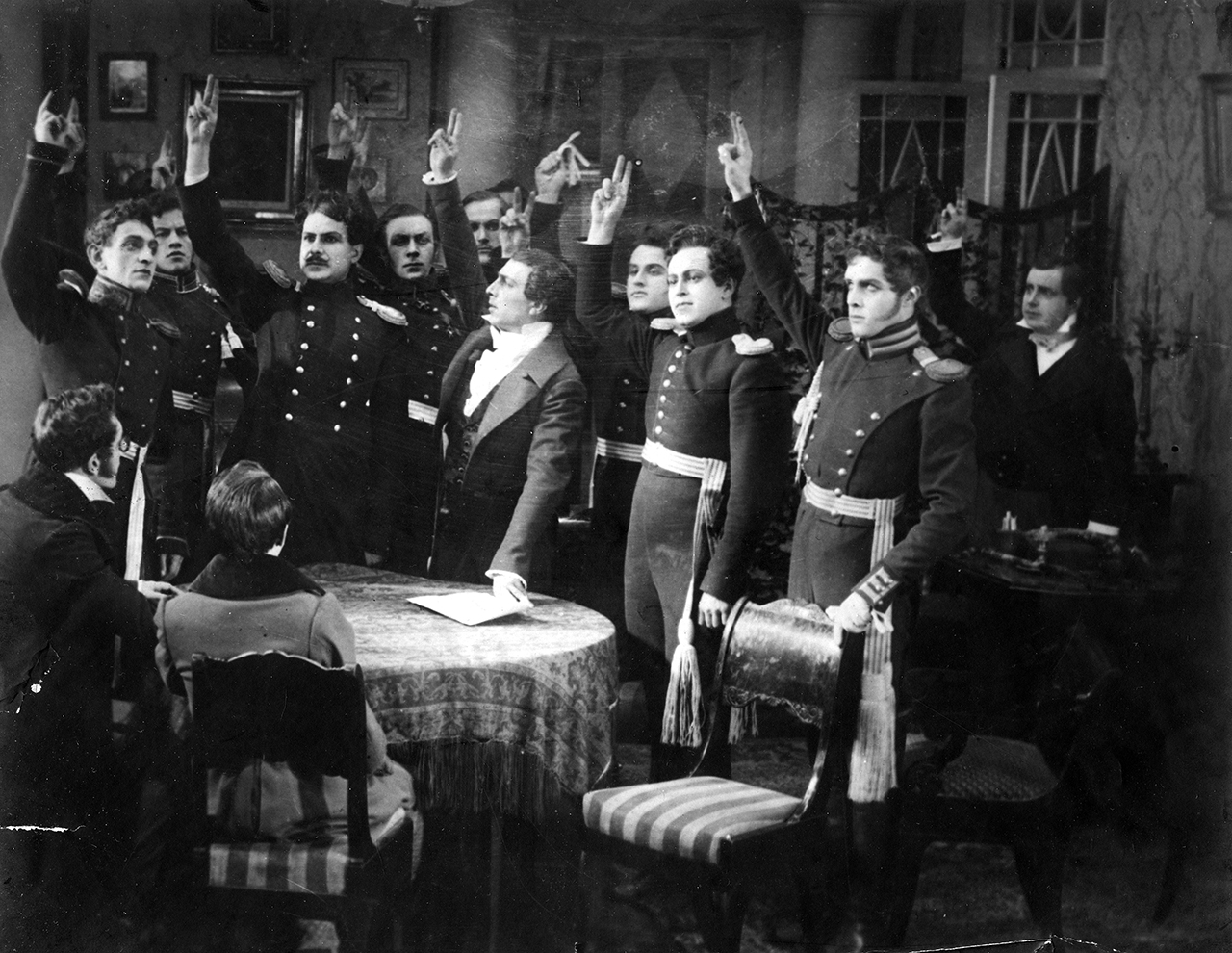 Россия 1825 г. То здесь, то там вспыхивают крестьянские мятежи. В Петербурге организуются кружки свободомыслящих дворян: лучшие из них приносят клятву на верность тайному революционному обществу, вставшему на путь борьбы с царизмом и крепостничеством. И когда приходит весть о смерти императора, офицеры — члены Северного общества поднимают свои полки на восстание. Нерешительность князя Трубецкого, одного из руководителей восставших, дает возможность будущему императору Николаю I окружить верными ему войсками Сенатскую площадь, где готовые к бою выстроились мятежные полки. Восстание подавлено. Пять виселиц открывают собой начало царствования Николая Палкина.