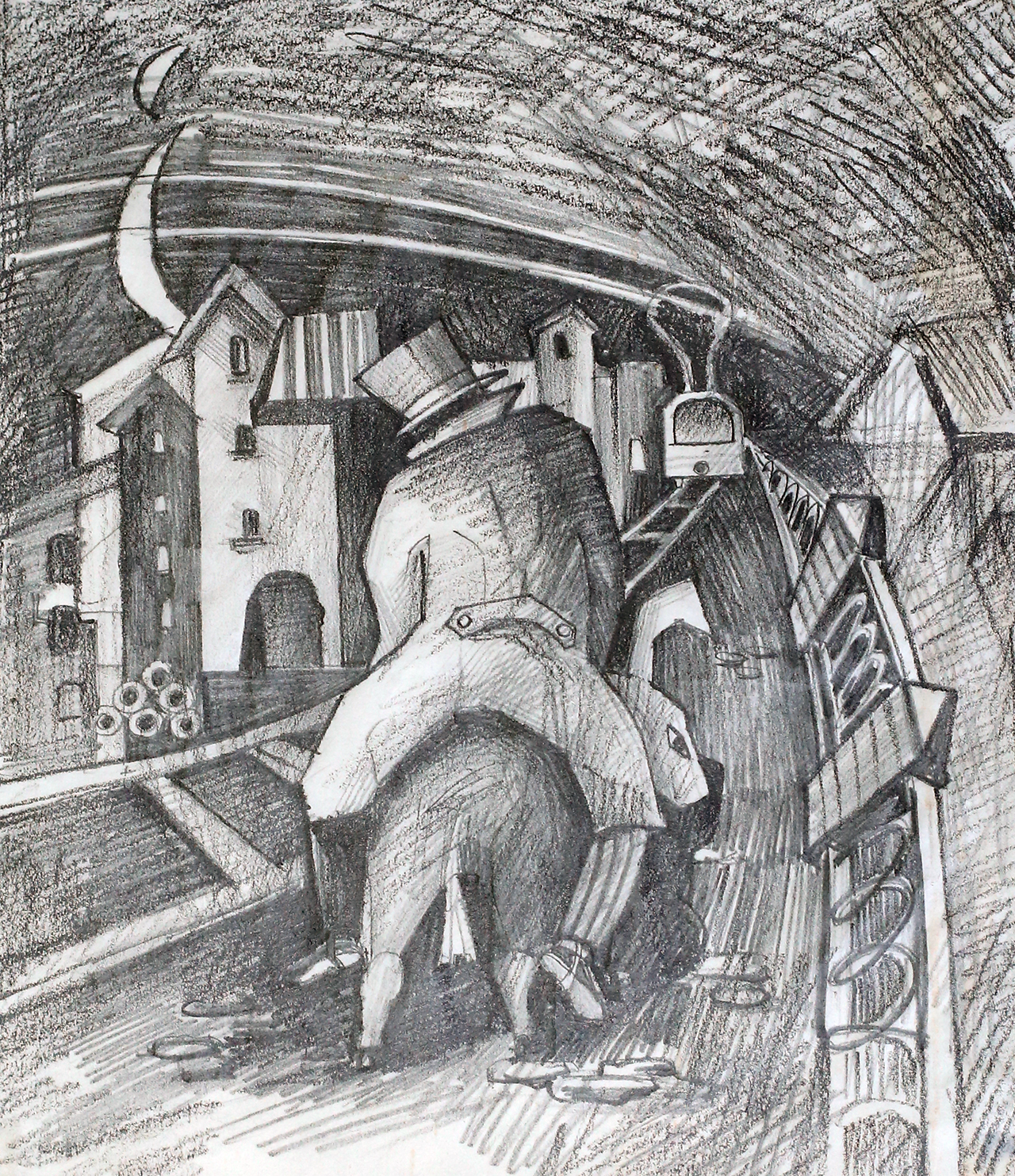 Человек в шляпе выходит из больницы в опустошенный город, пока вокруг него рушится большой мир, герой постепенно устраивает связи с окружающим его пространством: больше нет ни дружбы, ни любви, ни даже элементарной порядочности — все это не нужно там, где он живет. Найдя большую лодку, человек в шляпе укладывается в нее, как в гроб, и задвигает крышку.