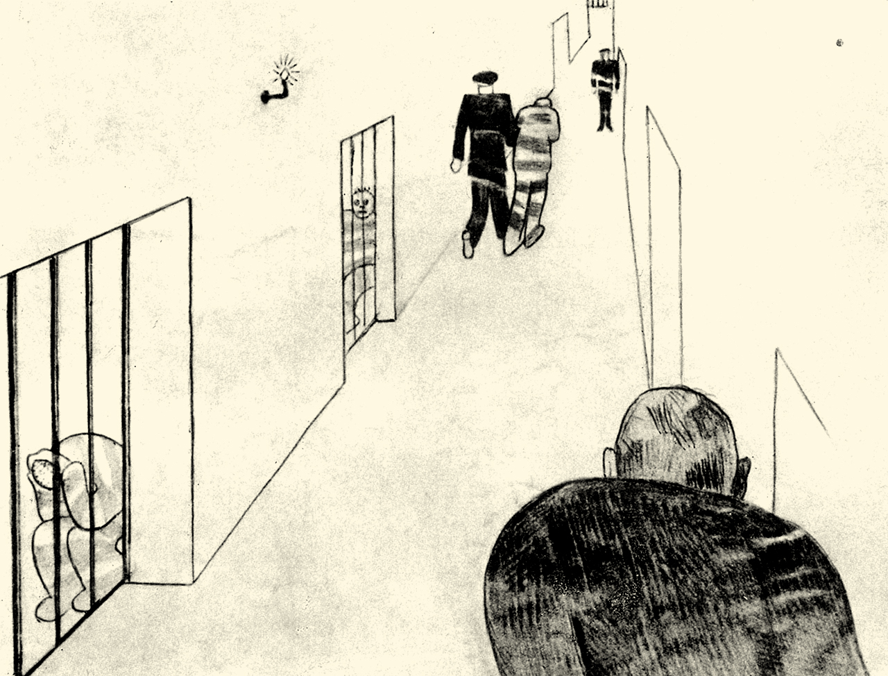 Коридор тюрьмы («Генри смотрел ему вслед»). Зарисовка Льва Кулешова к фильму «Великий утешитель». Реж. Лев Кулешов. 1933