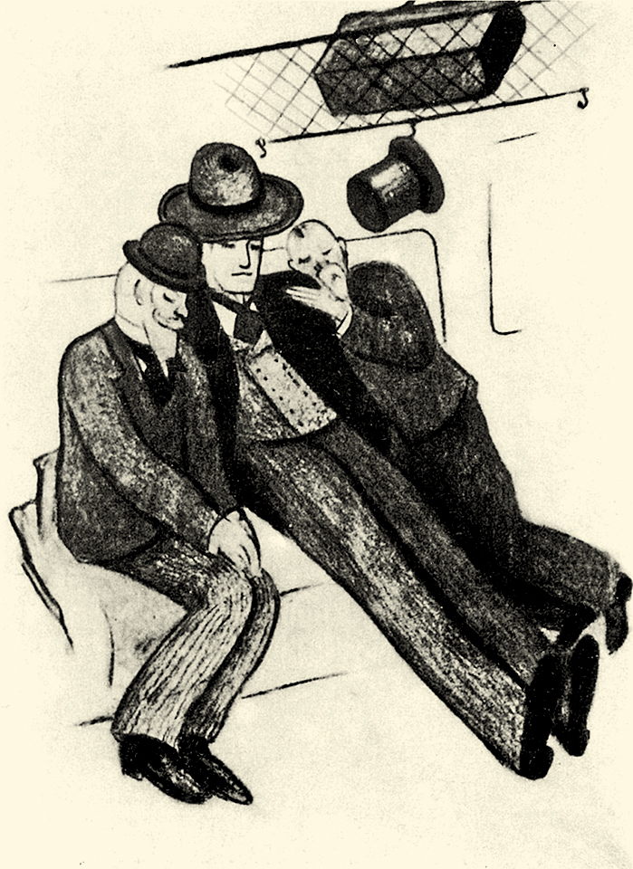 В вагоне. Зарисовка Льва Кулешова к фильму «Великий утешитель». Реж. Лев Кулешов. 1933